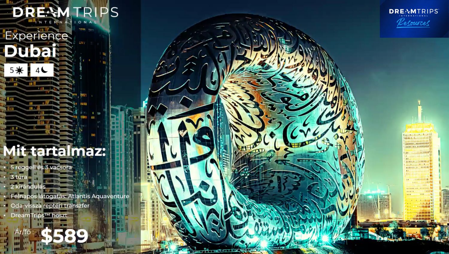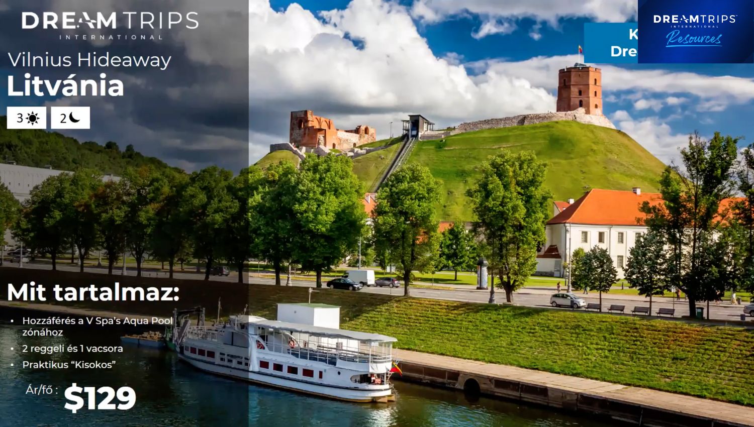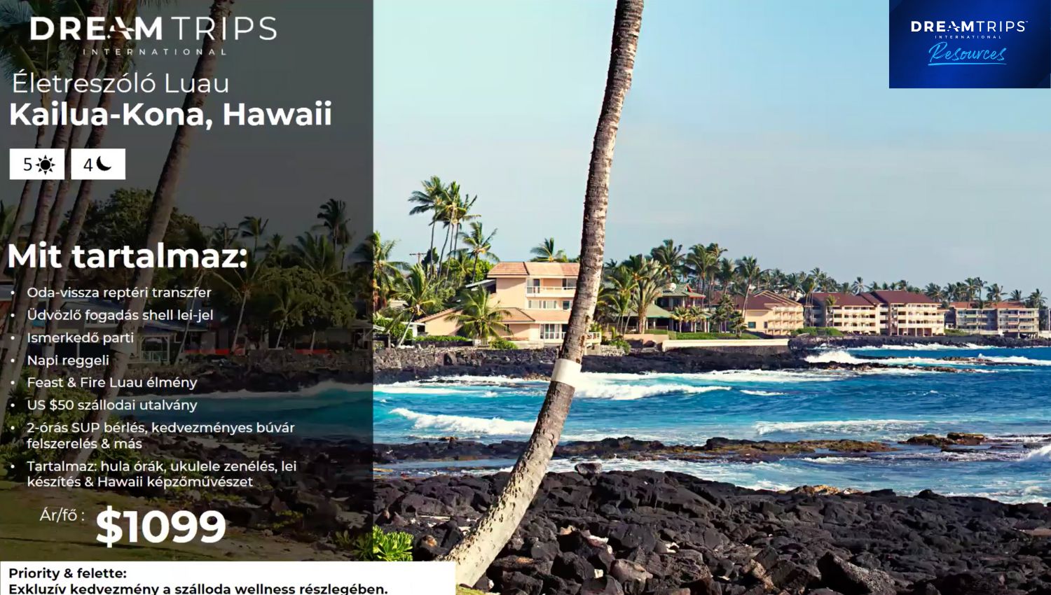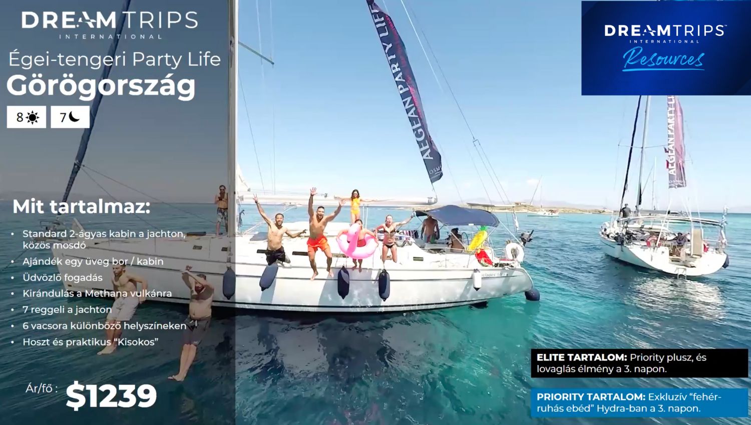 60 perces, ingyenes és kötelezettségektől mentes online interaktív bemutató a DreamTrips™ utazási élményről és a 3 hónapos együttműködésről.